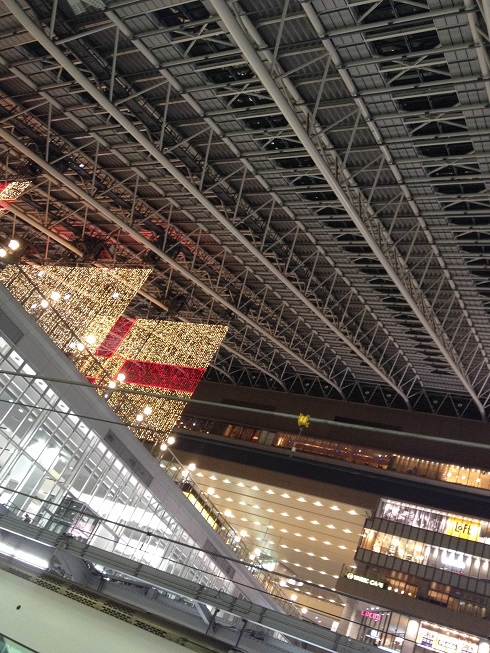 90度南に体を回せば新しい阪急百貨店のビル。くるりと振り向けば大阪駅の大きなアーチの屋根も見えるのに。